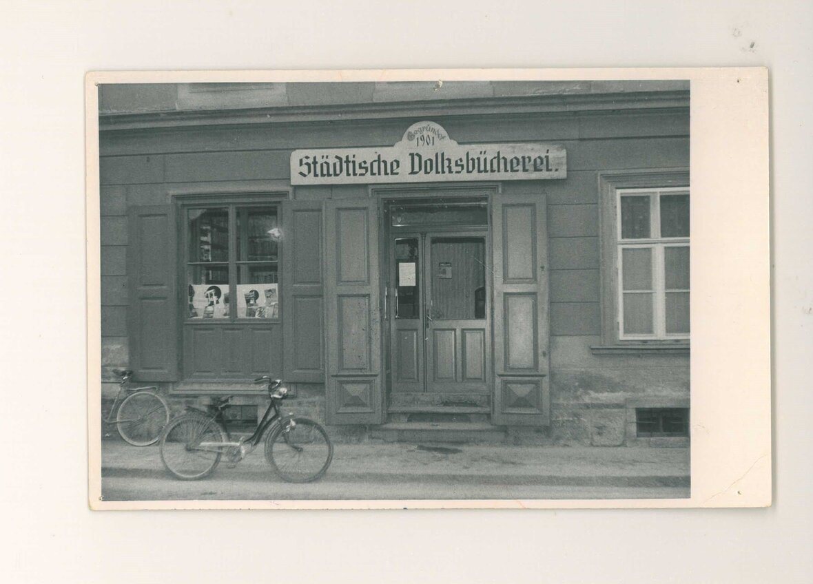 1901 wurde im Magazingebäude des Straußhauses (ehemalige Kaufhaus Mertl bekannt) die erste „Leih-Bibliothek“ eingerichtet. Nachdem sich Leser und Bestände vermehrten, siedelte man ins „Magerlhaus“ in die Bahnhofstraße. Rund 200 Bücher wurden jeden Samstag ausgegeben. Zu Zeiten des Nationalsozialismus mussten die Bestände der nunmehrigen Städtischen Volksbücherei den Richtlinien gemäß angepasst und eine verordnete Neuaufstellung durchgeführt werden. Nach 1945, ging die Bücherei in das Eigentum der Stadtgemeinde über. Es wurde renoviert, der alte Bücherstand gemustert und neue Bücher angekauft.
