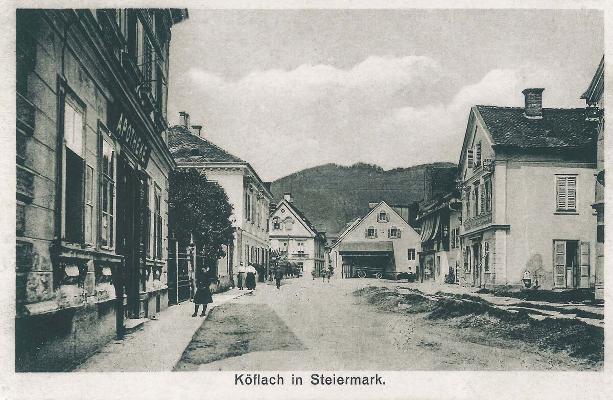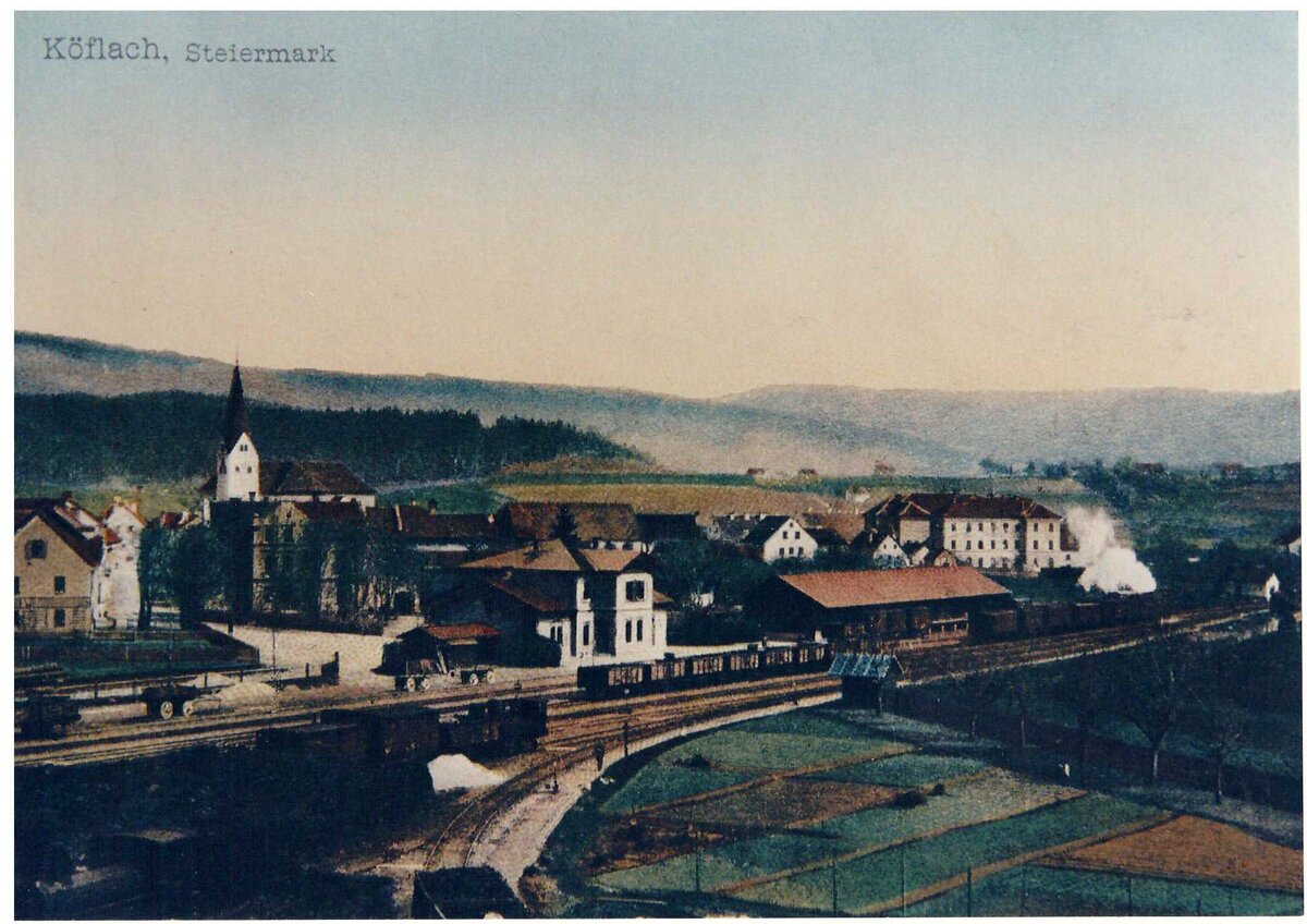 … fand am 3. April die feierliche Eröffnung der Graz-Köflacher-Bahn statt. Die Eisenbahn brachte reges Leben in den einst so stillen Markt. Durch die Erschließung weiter Kohlenfelder und die Anlage moderner Eisenwerke kamen immer mehr Menschen aus nah und fern nach Köflach. 20 Neubauten entstanden im Jahr. In der Bahnhofstraße wurden in den siebziger Jahren die an italienische Vorbilder gemahnenden schönen Häuser erbaut.