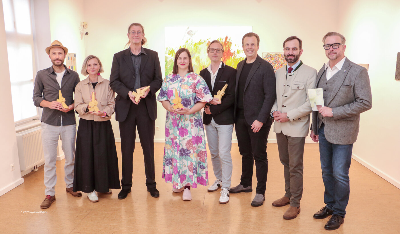Allen Ausgezeichneten wurde von Kulturlandesrat Karlheinz Kornhäusl und LAbg. Stefan Resch – in Vertretung von Landeshauptmann Kunasek – die MELA-Skulptur überreicht. Die von Andreas Heller gestaltete Skulptur erinnert an die vielseitige steirische Künstlerin der Moderne Mela Hartwig Spira, die 1938 vor den Nationalsozialisten aus Graz fliehen musste. Mit der seit 2019 vergebenen MELA wird nicht nur das Schaffen der Preisträgerinnen und Preisträger gewürdigt, sondern zugleich das Andenken an eine Künstlerin bewahrt, die trotz schwierigster Lebensumstände ihren künstlerischen Weg unbeirrt fortsetzte.