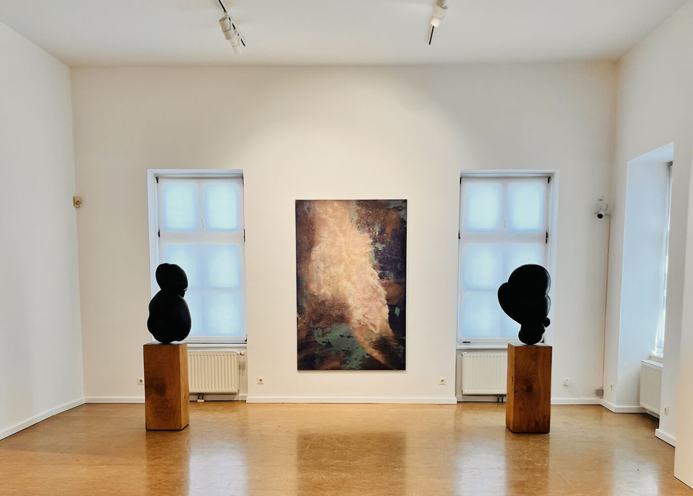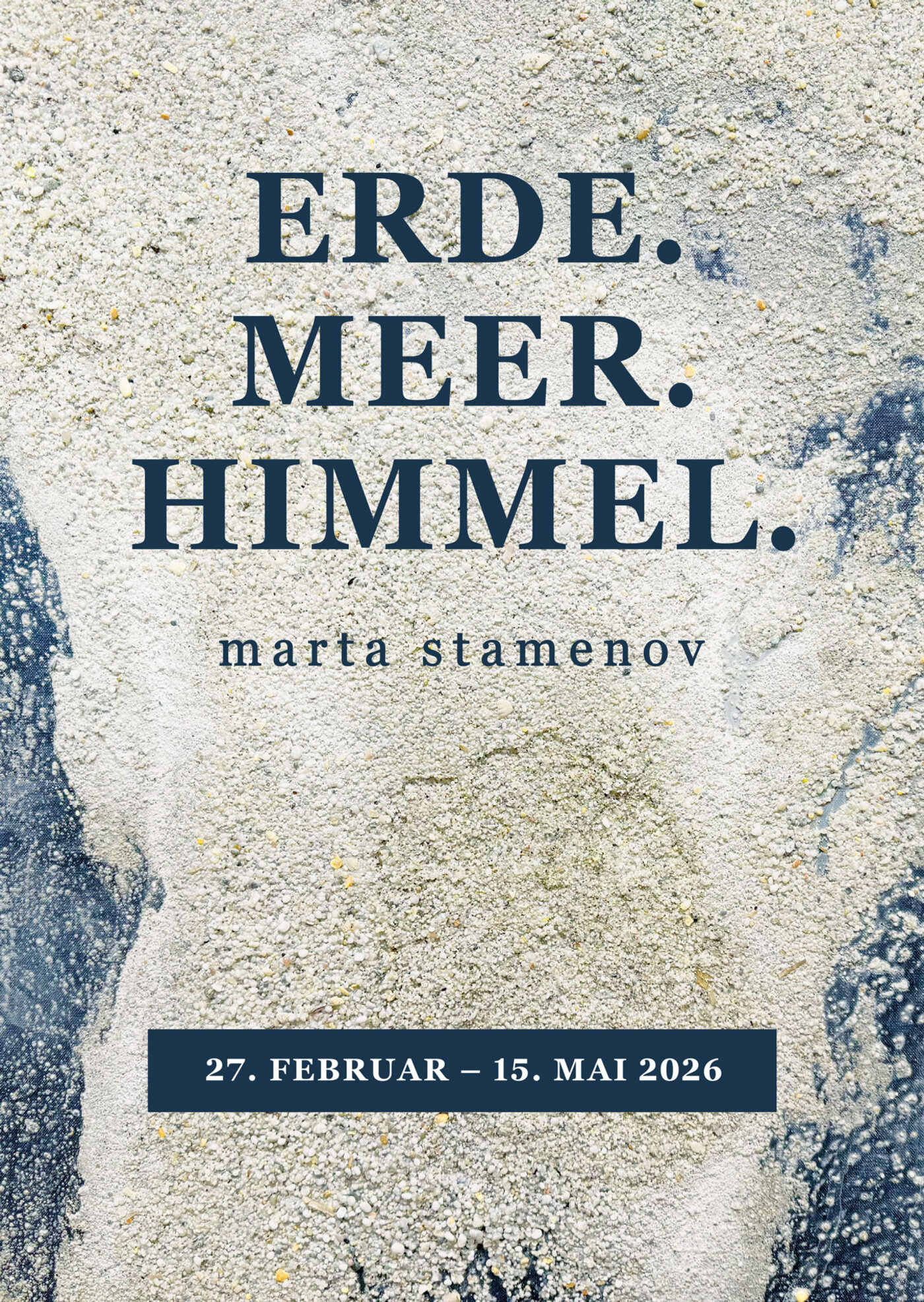 Die Ausstellung gliedert sich kuratorisch in vier ineinanderfließende Räume. Meeresrauschen empfängt die Besucherinnen und Besucher bereits beim Entrée und übernimmt dabei die Rolle einer atmosphärischen Filmmusik. Erden aus der Atacama-Wüste, aus der ehemaligen Felsenstadt Petra sowie vom Vulkan Ätna erzählen Geschichten. Großformatige Sand-Meeres-Bilder ziehen an und verströmen beinahe himmlische Energie. Die skulpturalen Arbeiten zeigen Naturperfektion in großem Format. Und als wunderbar stimmige Ergänzung vollenden subtil gezeichnete persönliche Erinnerungen aus den 1950er-Jahren die Schau.