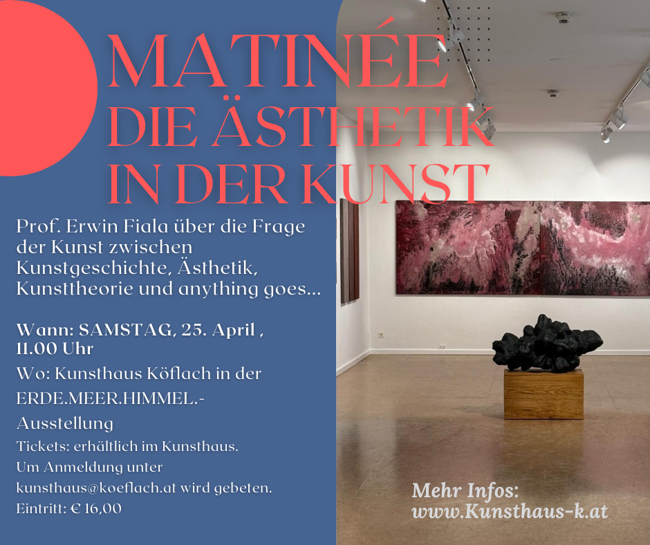 Samstag, 25. April, 11:00 Uhr: Matinée mit Prof. Erwin Fiala „Die Frage der Kunst zwischen Kunstgeschichte, Ästhetik, Kunsttheorie und anything goes“